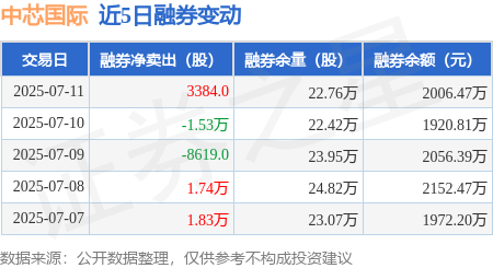本站消息,7月11日天宇配资,中芯国际(688981)融资买入4.23亿元,融资偿还4.84亿元,融资净卖出6113.4万元,融资余额71.34亿元。