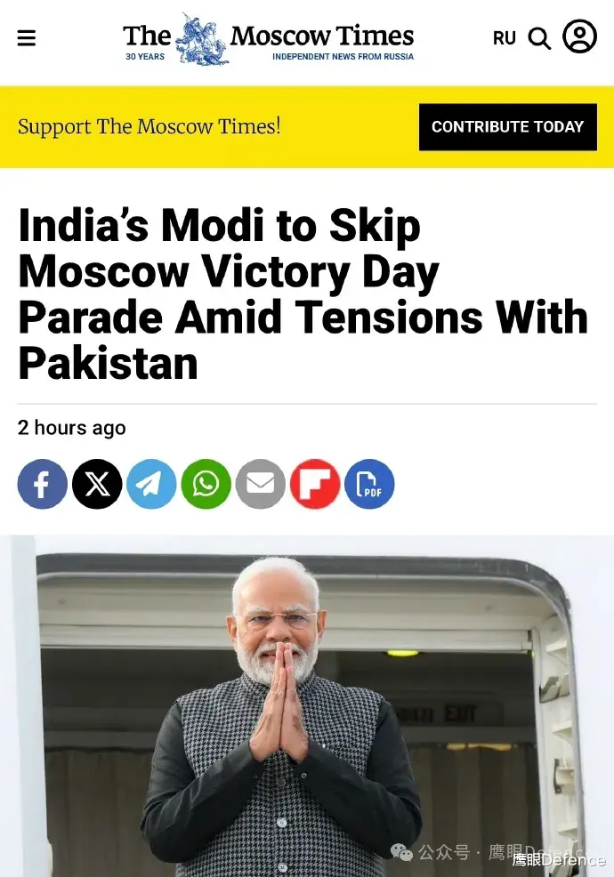 因为印巴局势紧张,印度总理莫迪和防长辛格已表示不会在5月9日前往莫斯科,印度代表团将改由内务部长桑贾伊·塞思带领前往。
