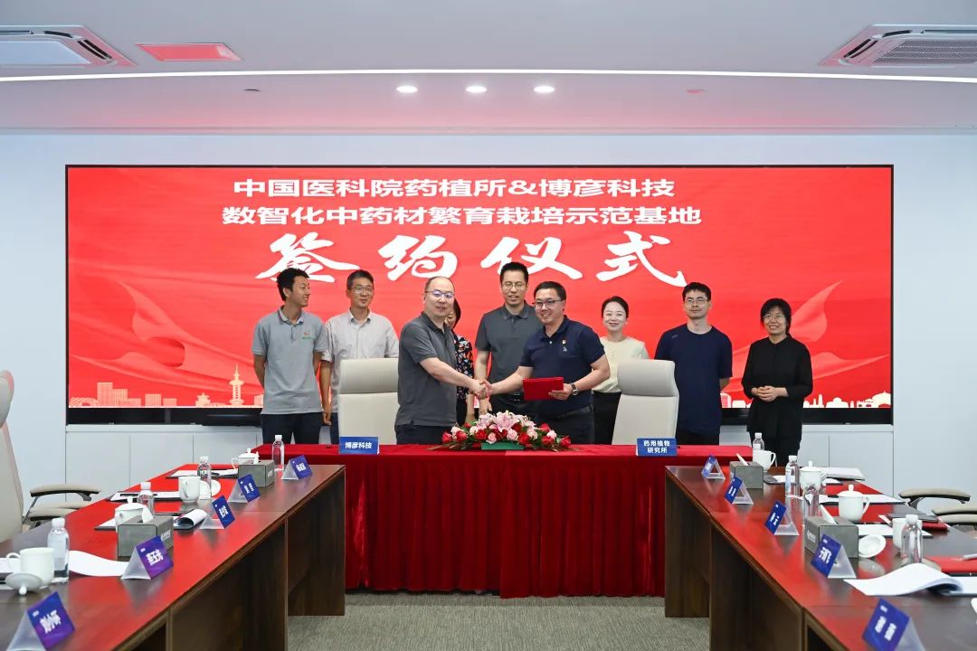 5月28日,博彦科技与中国医学科学院北京协和医学院药用植物研究所(以下简称“药植所”)正式签署战略合作协议,双方以“数智化中药材”为核心,共同打造紫苏、紫菀等中药材的数字化栽培示范基地,并计划以“双紫模式”为起点,推动人参、黄芪等更多品种的药材增产提质。这一合作不仅是中药材产业现代化转型的里程碑,更是博彦科技以数智之力赋能传统产业的又一创新实践。